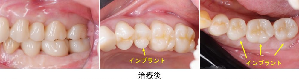 完成した上部構造を装着し、最終的な咬み合わせを調整して治療完了となりました。
